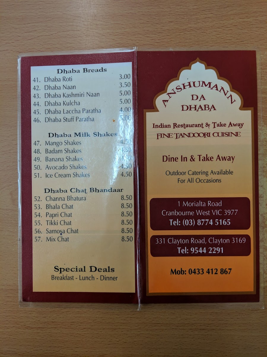 Welcome to Anshuman Da Dhaba, a gem nestled in Cranbourne West, VIC. Celebrated for its authentic Northern Indian cuisine, this restaurant invites food lovers to indulge in a kaleidoscope of flavors. The menu boasts traditional dishes like Butter Chicken, Lamb Vindaloo, and Kashmiri Naan, each crafted with precision and passion. The emphasis on fresh herbs and spices ensures that every bite is a delightful explosion of taste.